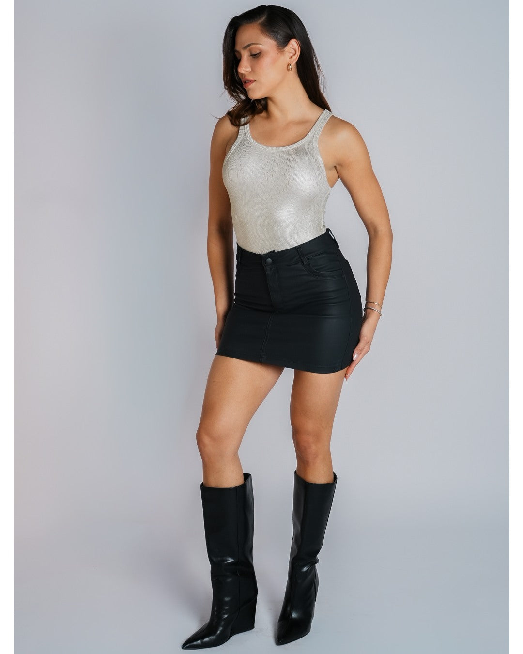 This matte black leather mini skirt exudes effortless allure and modern edge. With its sleek, curve-enhancing fit and smooth, refined finish, it blends bold attitude with timeless sophistication. Perfect for creating powerful day-to-night looks, the Black Spell Mini is a statement of confidence, style, and understated sensuality.