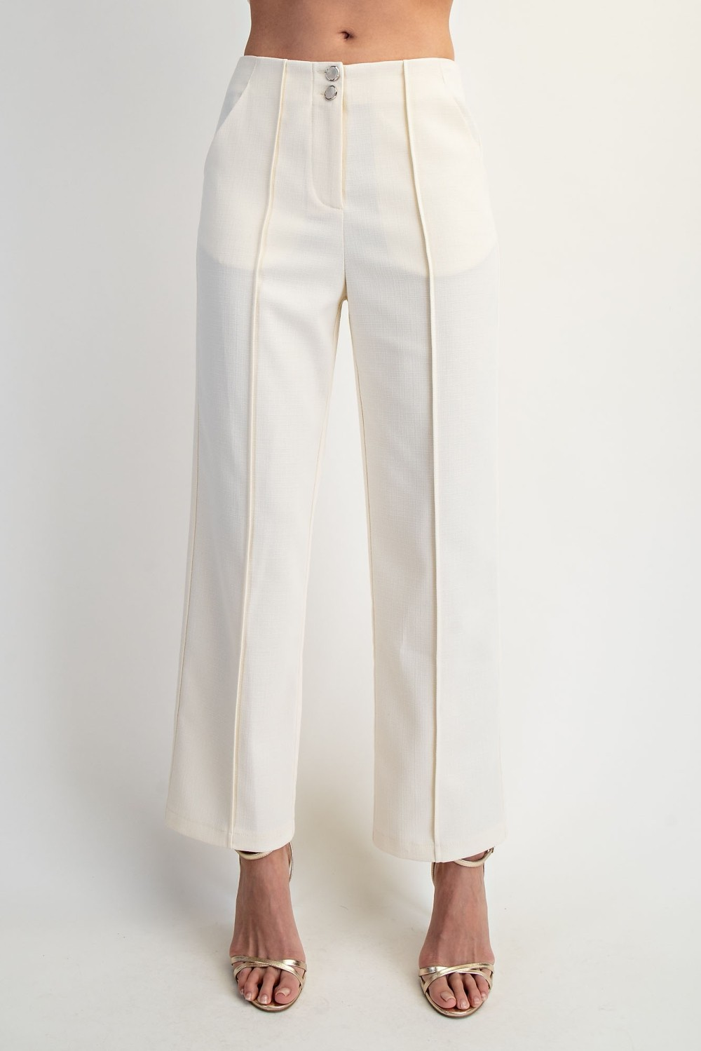 Set elegante en tono amarillo crema, ideal para un look suave y sofisticado, 97% Polyester, 3% Spandex