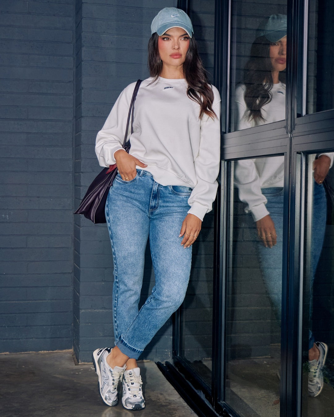 Jeans colombiano de tiro alto en azul oscuro intenso, con corte recto moderno que estiliza y define la figura. Un básico sofisticado con actitud urbana y versatilidad total.