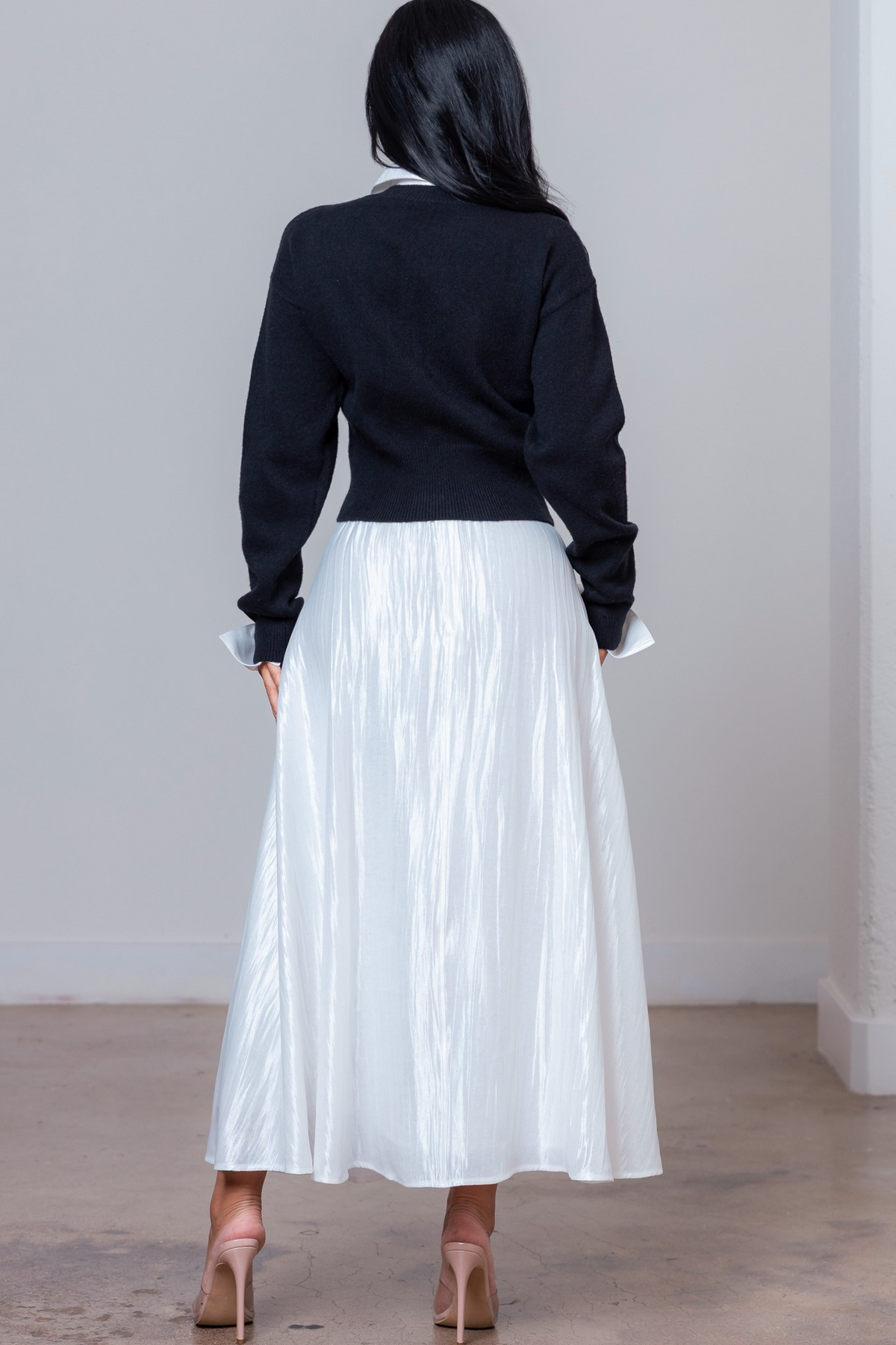 Conjunto tejido de dos piezas con suéter y falda a juego. Suave, cómodo y con un ajuste favorecedor, ideal para un look pulido y sin esfuerzo en el día a día.