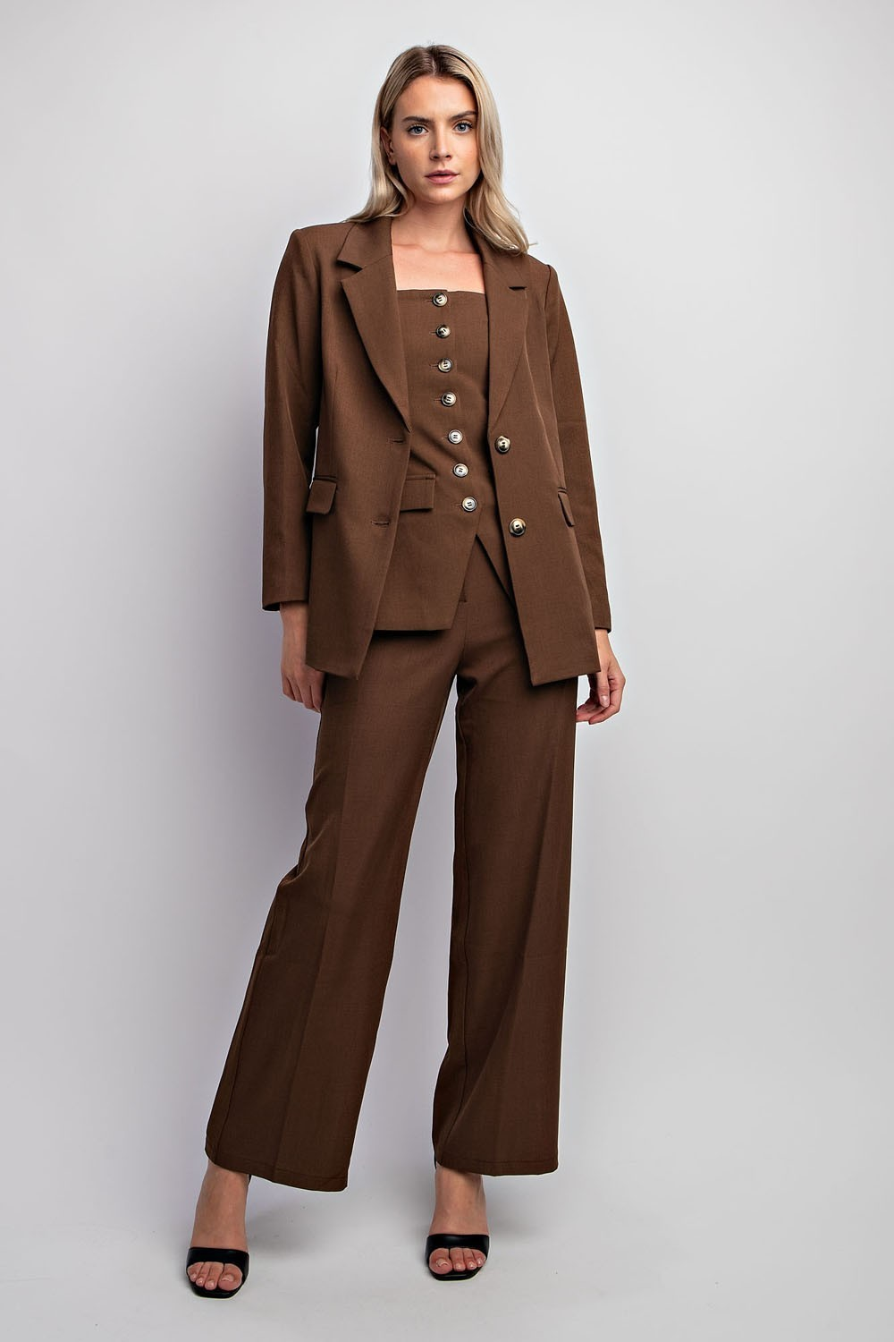 This women's brown blazer is the perfect blend of sophistication and versatility. Featuring a structured yet relaxed design, it has a slightly tailored fit that enhances the silhouette while ensuring comfort. The two-button closure adds a timeless and classic touch, making it ideal for both formal and casual looks. Crafted from high-quality fabric, its soft and lightweight texture provides a flawless fit. Details such as classic lapels, welt pockets, and a fully lined interior add a refined finish. Perfect for pairing with dress pants, jeans, or even layering over a dress for a chic and modern style.