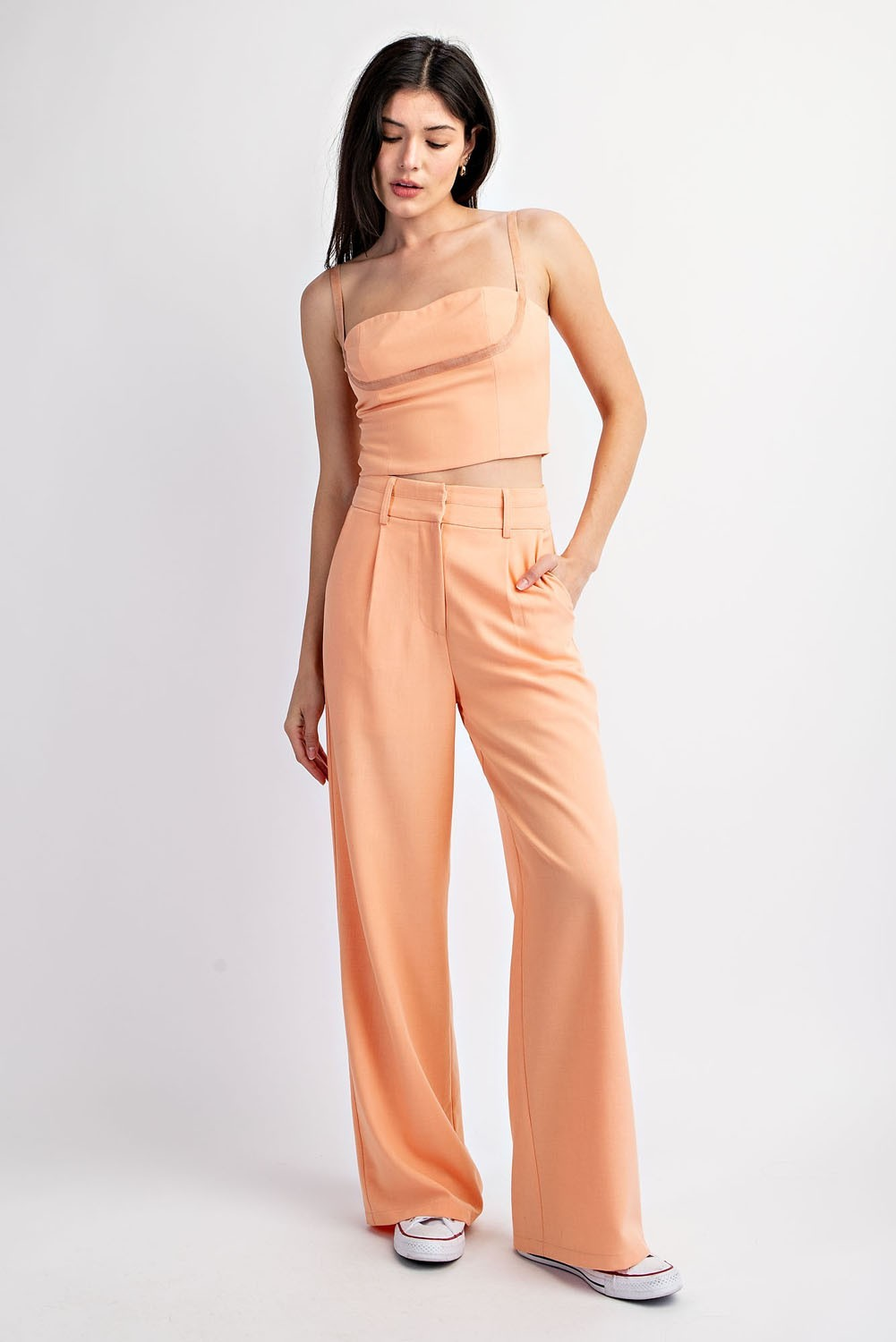 Embrace the soft warmth of the PEACH BLOSSOM SET, a stunning peach-toned duo that radiates freshness and elegance. This set features a delicate top paired with comfortable, stylish pants—perfect for everything from casual outings to special occasions. The peach color adds a vibrant and sweet touch, elevating your look with a modern, feminine vibe. Feel radiant and move with effortless comfort wherever you go!