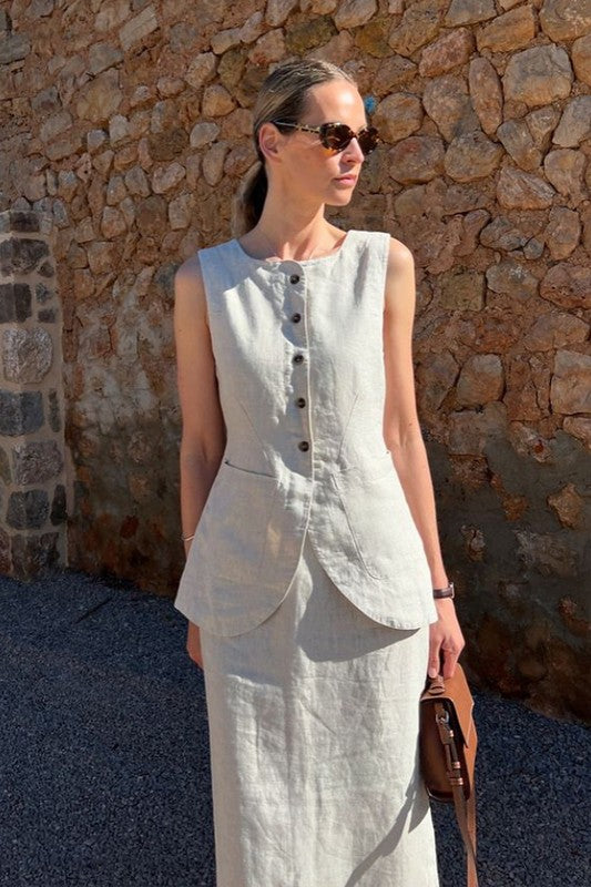 A versatile and elegant set that captures the essence of moonlight. Crafted from a soft and lightweight fabric, this ensemble strikes the perfect balance between sophistication and comfort. Its minimalist design and pure white hue make it an ideal choice for any occasion, from a casual outing to a special event.
