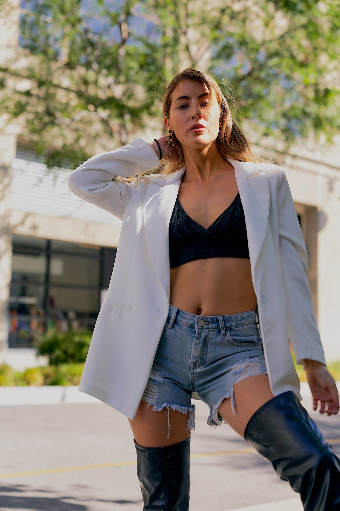 Typically designed with classic lapels, a one- or two-button front closure, flap or welt pockets, and an inner lining for a polished finish, this blazer can be worn with tailored trousers and heels for a refined look or with jeans and sneakers for a more laid-back style.